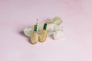 - Dangle earrings with tourmaline (6.6ctw) and white brilliant cut diamonds (1.31ctw) in 18k yellow gold.