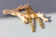 Beautiful hand fabricated dangle earrings with white brilliant cut diamonds set in 18 karat yellow gold.