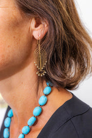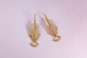 Beautiful hand fabricated dangle earrings with white brilliant cut diamonds and white princess cut diamonds set in 18 karat yellow gold.