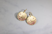 Beautiful hand fabricated 18 karat yellow gold earrings with brilliant cut rubies set in an organic pattern.