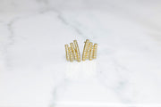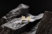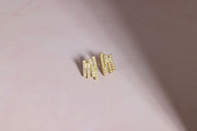 Beautiful hand fabricated stud earrings with white brilliant cut diamonds set in 18 karat yellow gold.