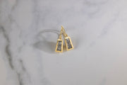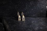 Beautiful earrings hand fabricated in 18 karat yellow gold with salt and pepper baguette diamonds.