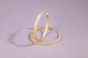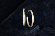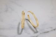 Beautiful hand fabricated hoop earrings with white brilliant cut diamonds set in 18 karat yellow gold.