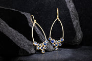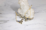 Beautiful hand fabricated earrings with blue sapphire Cabochons set in 18 karat yellow gold.