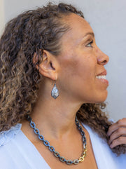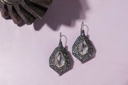 One of a kind hand fabricated earrings with fancy cut diamonds and silver brilliant cut diamonds set in palladium and patinated sterling silver.