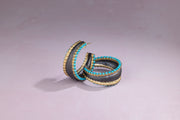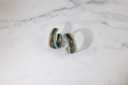Chunky hoop earrings hand fabricated in patinated sterling silver with turquoise beads set in 18 karat yellow gold.