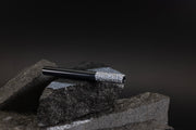 This pipe is hand fabricated in patinated sterling silver, hand carved Edwards black jade, and white brilliant cut diamonds.