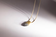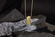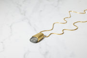 One of a kind hand fabricated necklace with a large natural raw diamond crystal set in 18 karat yellow gold.