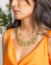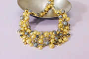 Beautiful one of a kind bib necklace made with Cabochon™ diamonds and white brilliant cut diamonds set in 18 karat yellow gold and patinated sterling silver.