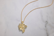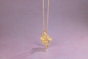Beautiful hand fabricated necklace with natural pastel colored baguette diamonds set in 18 karat yellow gold.