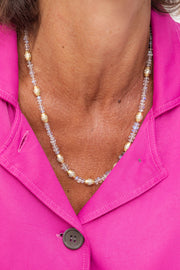Beautiful one of a kind necklace with moonstone beads and white brilliant cut diamonds set in 18 karat yellow gold.