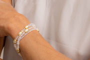 - 18k yellow gold, moonstone beads (~45.1ct), and white brilliant cut diamonds (~3.37ct)