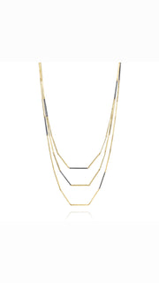 This simple 18 karat yellow gold and sterling silver bar necklace comes in 3 lengths making it perfect for wearing alone or layering.