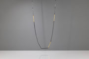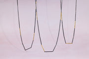This simple sterling silver and 18 karat yellow gold bar necklace comes in 3 lengths making it perfect for wearing alone or layering.