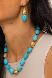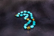 Beautiful hand fabricated necklace with Kingman turquoise and black brilliant cut diamonds set in 18 karat yellow gold.