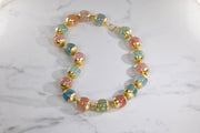 One of a kind hand fabricated necklace with multicolored beryl beads set in 18 karat yellow gold.