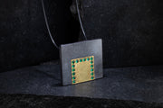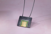 Hand fabricated necklace with emerald cabochons set in 18 karat yellow gold and patinated sterling silver.