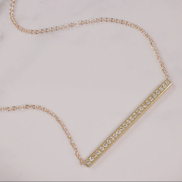 Beautiful hand fabricated necklace with white brilliant cut diamonds set in 18 karat yellow gold.