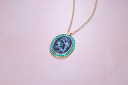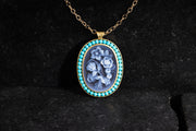 - 18k yellow gold, turquoise beads (~3.14ct), Onyx cameo