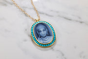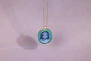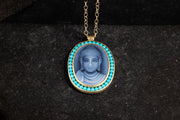 - 18k yellow gold, turquoise (~3.14ct), Onyx cameo