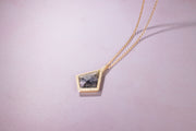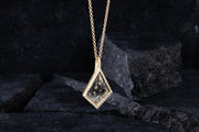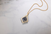 This incredible one of a kind necklace is hand fabricated in 18 karat yellow gold with a large kite shaped fancy cut koi pond diamond and white brilliant cut diamonds.