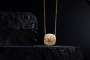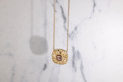 Beautiful necklace hand fabricated in 18 karat yellow gold with a fancy cut diamond surrounded by Autumn™ and white brilliant cut diamonds.