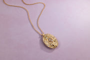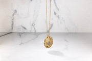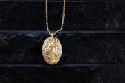 Beautiful pendant necklace hand fabricated in 18 karat yellow gold with a fancy cut diamond surrounded by Autumn™ and white brilliant cut diamonds.