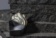 Box with sterling silver, 18 karat yellow gold, white brilliant cut diamonds, and Willow Creek Jasper