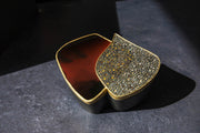 Todd Reed Double lidded box with Autumn Diamonds (3.27ctw), naturally colored brilliant cut diamonds (5.16ctw) and Obsidian in 18k yellow gold in sterling silver.