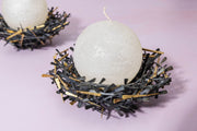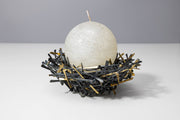 Hand forged sterling silver and 18k yellow gold round candle holders