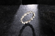 Palladium eternity band with bezel set grey rose cut diamonds.