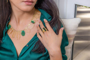 - Green tourmaline (~4.10ct) white baguette diamonds (~.41ct), cognac baguette diamonds (~.76ct), and 18k yellow gold