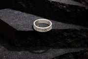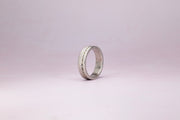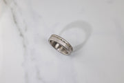 Palladium ring with raw diamond cubes channel set off center eternity band