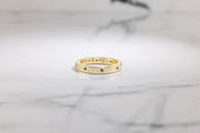 This beautiful eternity band is hand fabricated in 18 karat yellow gold with flush set black and white brilliant cut diamonds.