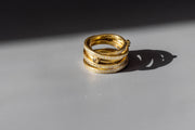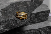 Hand fabricated ring in 18 karat yellow gold with rose cut diamonds, and white brilliant cut diamonds.