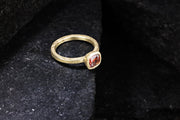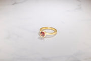 Hand fabricated ring with an orange spinel set in 18 karat yellow gold.