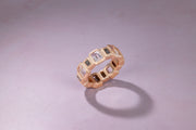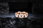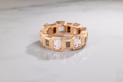 Hand fabricated ring with Morganite and baguette diamonds set in 18 karat rose gold.