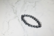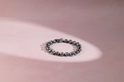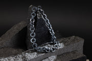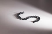 Hand fabricated circular link bracelet with black brilliant cut diamonds set in patinated sterling silver.